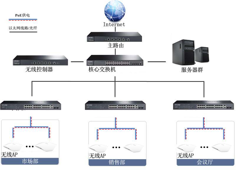 企業(yè)單位網(wǎng)絡(luò)較為復(fù)雜,對(duì)網(wǎng)絡(luò)可管理性與可維護(hù)性要求較高。無線AP部署位置的靈活性,并且不能成為火災(zāi)隱患。