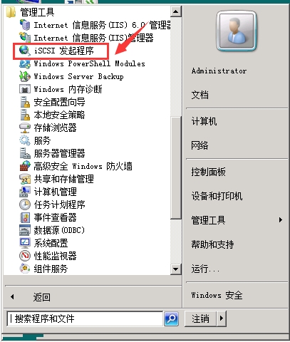 在開始>管理工具中,找到"ISCSI發(fā)起程序",如下圖:
